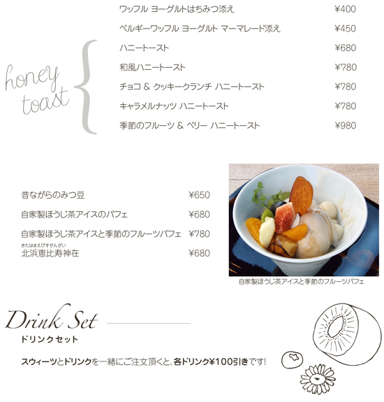 | 料金 | 3,300円(ランチ デザート付き)(税込) |