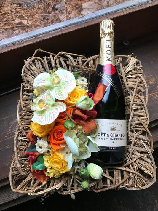 結婚祝い モエ[ワイン 花ギフト]お手軽 シャンパン・モエとお花のアレンジセット