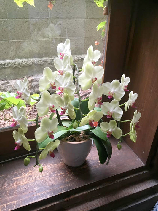 開店祝いや移転祝いに!パンダのような胡蝶蘭とシダの寄せ植え
