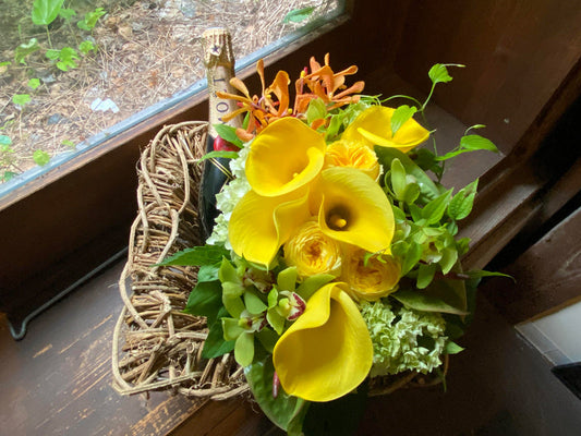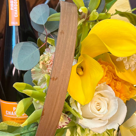 男性へのプレゼントに!美味しいイタリアスパークリングワインとお花のアレンジセット(イエロー)
