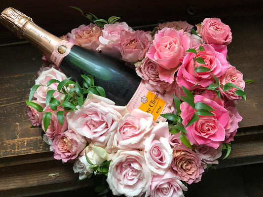 結婚祝い 結婚記念日 シャンパン ヴーヴクリコローズラベル フルボトルとバラいっぱいのハートリース