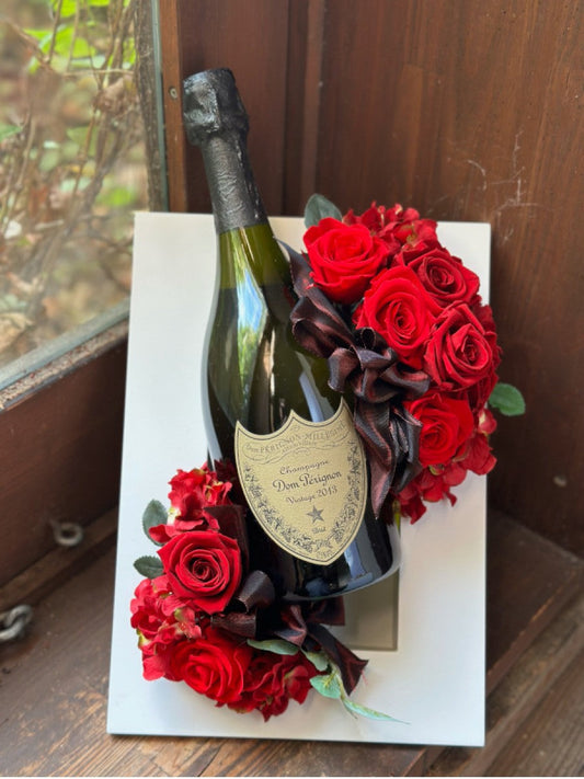 還暦祝い 誕生日祝い プレゼント [シャンパン 花 ギフト]フルボトル ドンペリとプリザーブドフラワーの額縁アレンジ