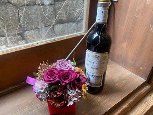 還暦祝い 誕生日プレゼント【花とワイン】スペイン王室御用達ワイナリー赤ワインとプリザーブドフラワーのセット