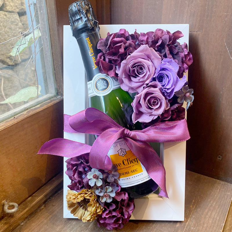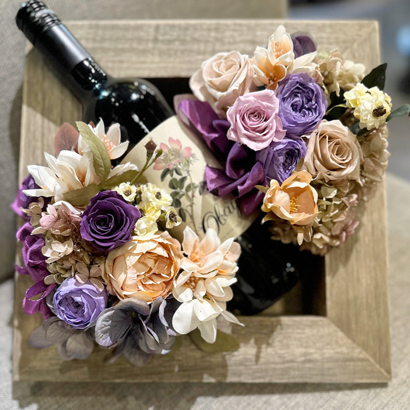 送別祝いにプリザーブドフラワーのギフト 同僚やお友達の送別祝いに、素敵なお花を贈りませんか? 枯れないお花、プリザーブドフラワーから、ゴージャスな生花のアレンジメントまで、プレゼントに最適なお酒と花ギフトをご用意しています。モエやドンペリ、ヴーヴなどの銘柄シャンパンやワイン等のお酒とお花が一緒に贈れます。同僚やお友達の送別のギフトとして人気なのが、ミニボトルのシャンパンやスパークリングワインと”枯れない花”プリザーブドフラワーのギフトです。お酒もお花も貰ったら嬉しいですよね!額フレームにシャンパンやワインとプリザーブドフラワーをセットした額縁アレンジシリーズは、オシャレで人気です。その他1万円前後のお酒と花ギフトが充実しています。全国に宅配できます!