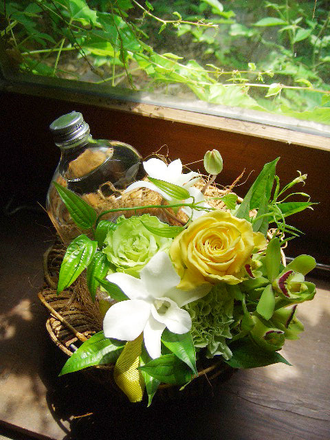 敬老の日 男性へのプレゼント 誕生日ギフト 内祝い[生花 ギフト]焼酎とお花のアレンジセット(いいちこ)