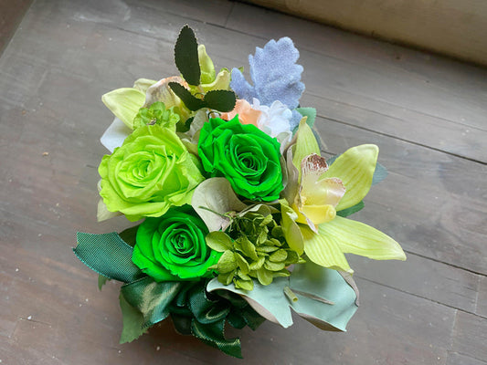 送別 誕生日プレゼントに!プリザーブドフラワーアレンジ アロマ香る器(グリーン)