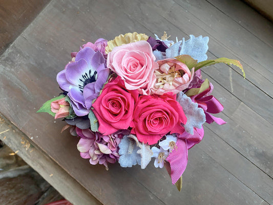 誕生日プレゼントに!プリザーブドフラワーアレンジ アロマ香る器(ピンク)