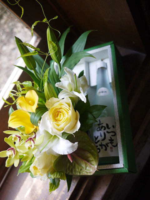 和風な結婚祝い 古希 還暦祝い[花 酒ギフト]日本酒(久保田)とアレンジフラワーのセット