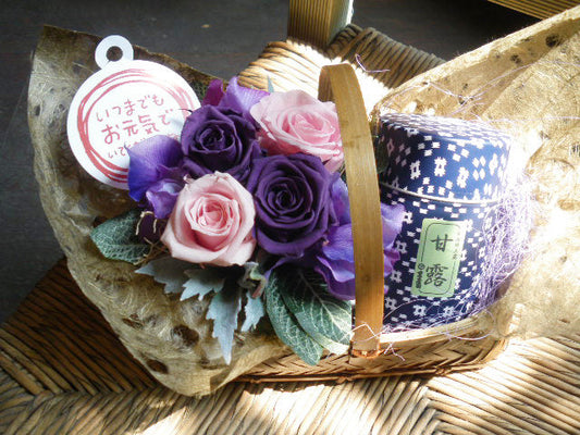 敬老の日 古希祝い 還暦祝い[花 ギフト]はなちゃセット プリザーブドフラワー(パープル)