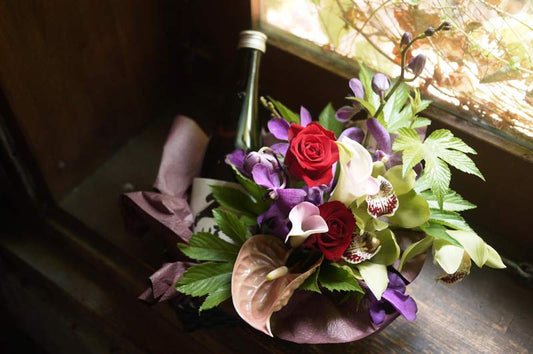 誕生日プレゼント 季節の花束と生き様ワイン(赤ワイン)のギフトセット