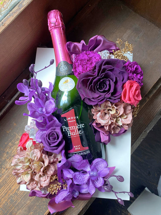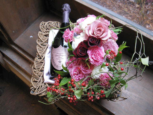 結婚祝い 誕生日祝い[ワイン 生花 ギフト]シャンパンの女王ドンペリ ロゼ(ピンドン)とお花のプレミアムセット