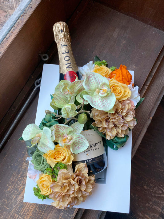 結婚祝い モエ[ワイン 花ギフト]お手軽 シャンパン・モエとお花のアレンジセット