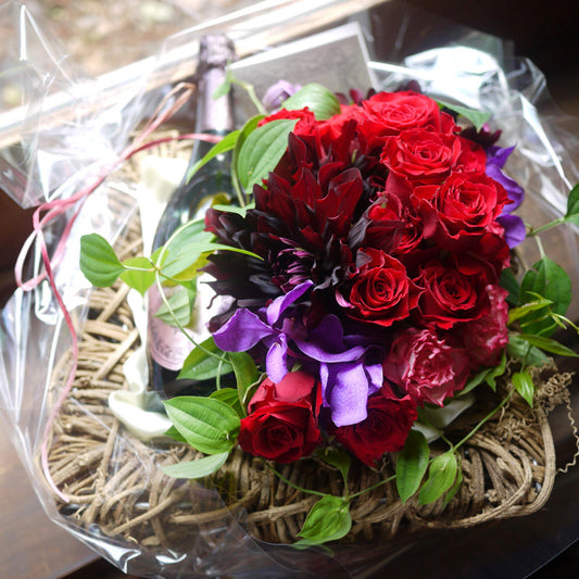社長就任祝い 還暦祝いにおすすめ![ドンペリ ピンク フラワーギフト]ピンドンとお花のアレンジギフト(レッド)