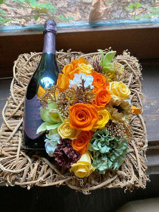 開業祝い 結婚祝い 還暦祝い[ドンペリロゼ 花ギフト]シャンパンの女王ピンドンとイエローカラーのプレミアムセット