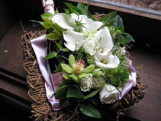 結婚祝い シャンパン モエとホワイトカラーのお花のアレンジセット ¥22,440