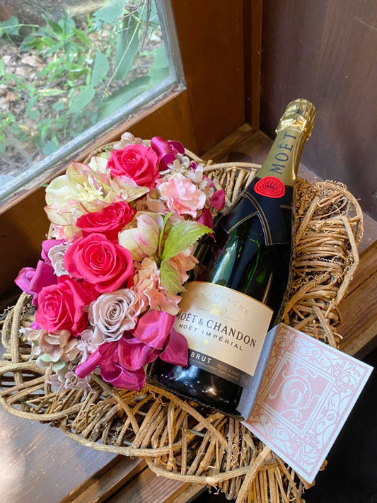 結婚祝い モエ[ワイン 花ギフト]お手軽 シャンパン・モエとお花のアレンジセット