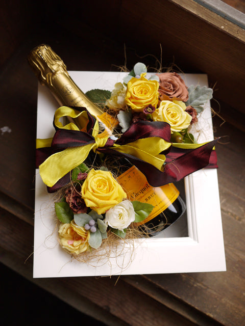 | お母さんの還暦祝にシャンパンとプリザーブドの額縁アレンジ | ![]() |