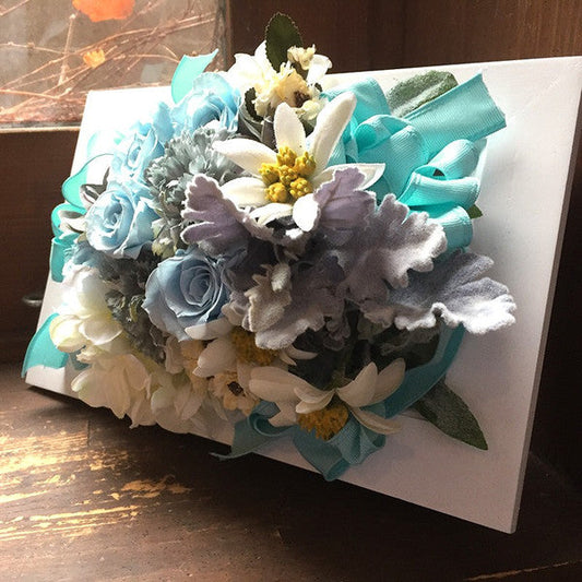 結婚祝い 新築祝いにオススメ![花プレゼント]プリザーブドフラワーの白 額縁アレンジ スカイブルー