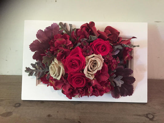 還暦祝い 開店祝い 二次会ギフトにオススメ[花プレゼント]プリザーブドフラワーの白額縁アレンジ レッド