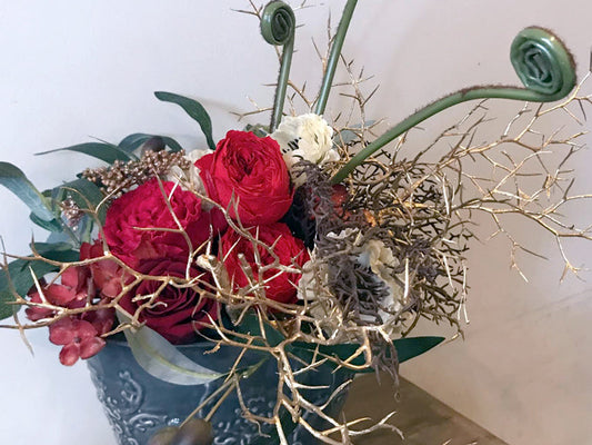 還暦祝い 誕生日プレゼント[インテリア 雑貨]造花とプリザーブドフラワーのアレンジ(ゼンマイ)レッド