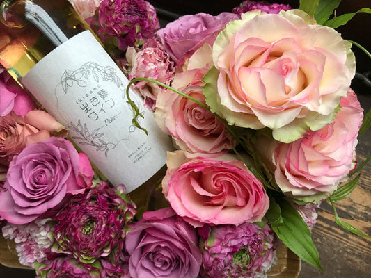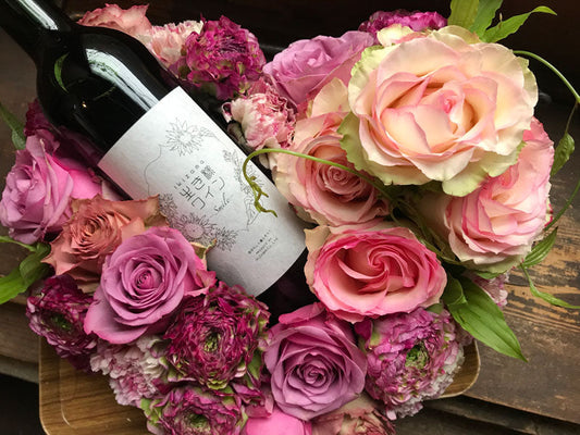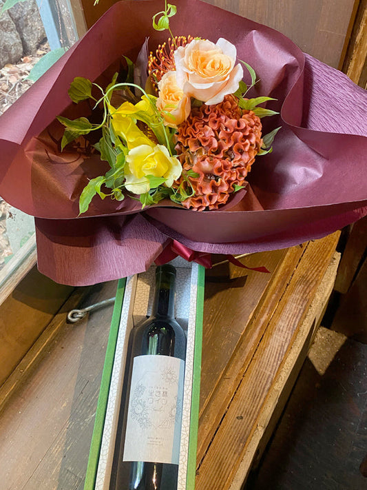 季節の花束と生き様ワイン(ロゼワイン)のギフトセット