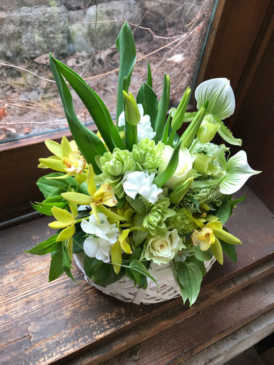 誕生日祝い 開店祝い 出産祝い[お花のプレゼント]季節のホワイト・グリーン系アレンジフラワー