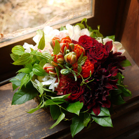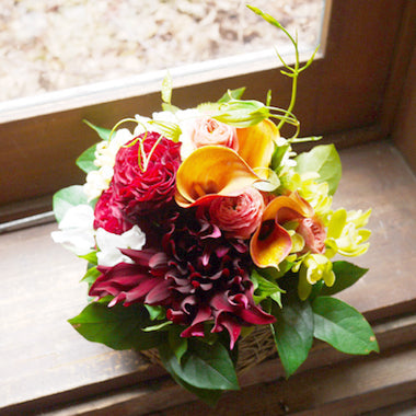 誕生日 送別プレゼント[花ギフト] 季節のおまかせアレンジ(オレンジレッド)