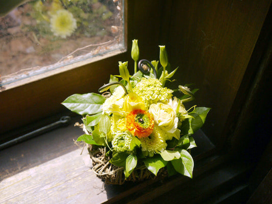 誕生日 コンサート 新築祝いプレゼント[生花ギフト]季節のお任せアレンジメント 黄色・オレンジ系
