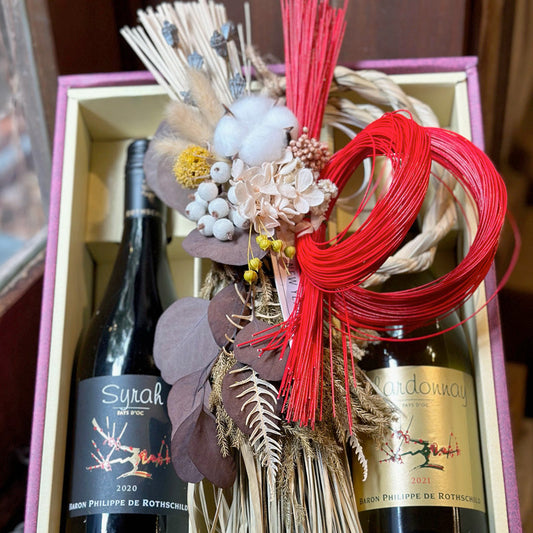 お正月ワインに!5大シャトー、バロン・フィリップ・ド・ロスチャイルド社紅白ワインとしめ縄のセット