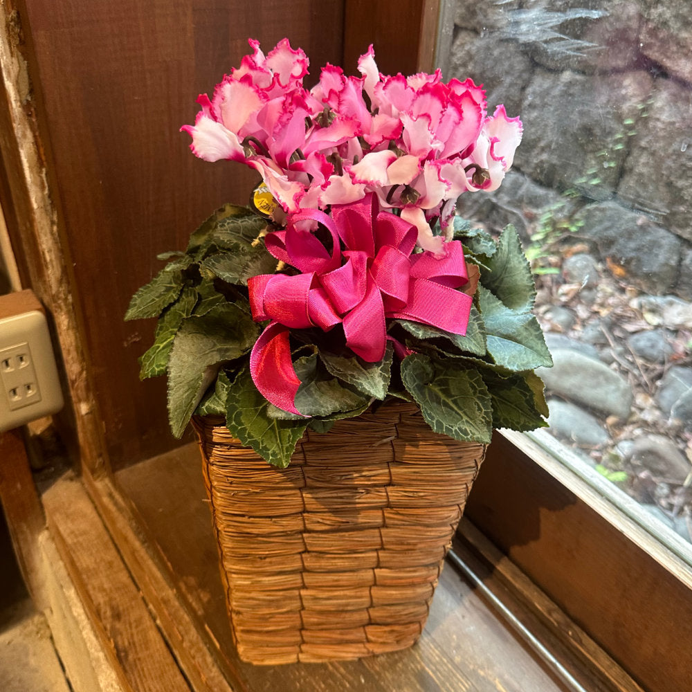 クリスマスプレゼント!シクラメン ビクトリアピンク 5寸 カゴ入り